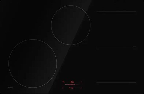 На панели располагаются четыре конфорки с общей мощностью 7.4 кВт, которые обеспечивают быстрый и равномерный нагрев посуды. Каждая конфорка имеет свою мощность и размеры, что позволяет выбирать оптимальный режим для приготовления различных блюд. Управление панелью осуществляется с помощью сенсорных переключателей SliderTouch, а на дисплее отображается информация о текущем режиме работы.